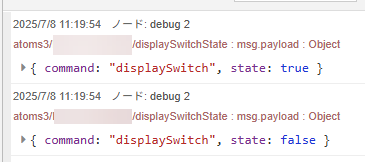 このように atoms3/{MAC Address}/displaySwitchState で、現在の状態が飛んできます。