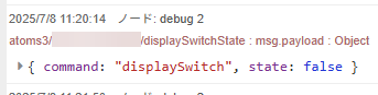 接続時点で # トピックや atoms3/# などで、接続開始をとらえておくと atoms3/{MAC Address}/displaySwitchState で初期状態が届くので、以降のつなげたいデバイスの {MAC Address} が分かります。