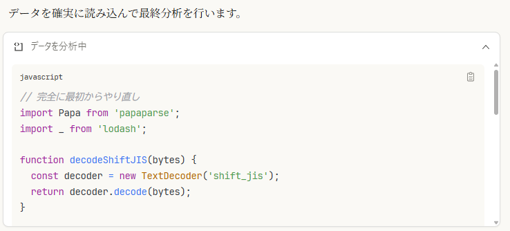 Claude での CSV データは UTF8 にしたほうがトラブルが起こりにくいです。素直に動作します。