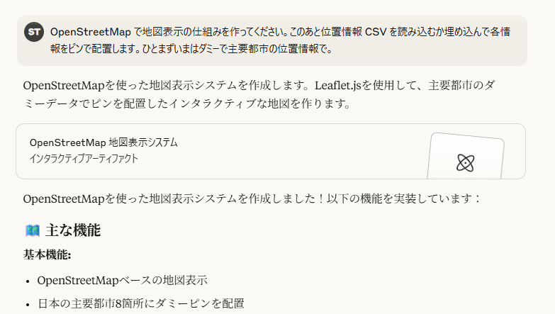 と表示の基礎をつくります。地図の仕組みともなるとデータも表示もと一気に依頼すると、うまくいかないこともあるので、こうします。