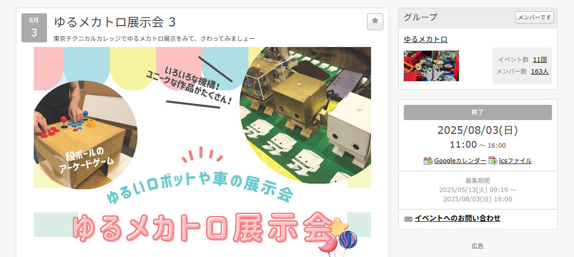#ゆるメカトロ 展示 3 はもうすぐ! #東京テクニカルカレッジ テラホールで 8/3日 11時 から。