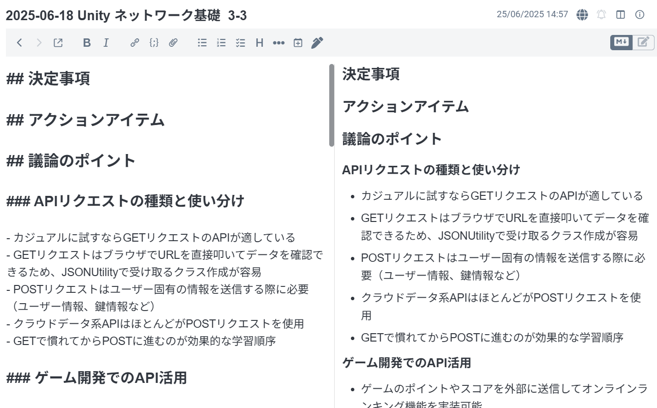 AI 議事録での授業の様子です。HTTP を丁寧につなぎながらも AI の API につなげるなど、実際に作るときに役立つような内容を心掛けました。