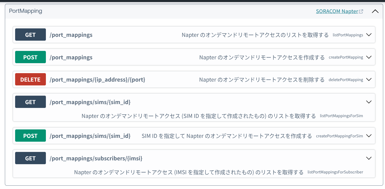 SORACOM の Napter による転送設定はこちらの API で操作することができます。