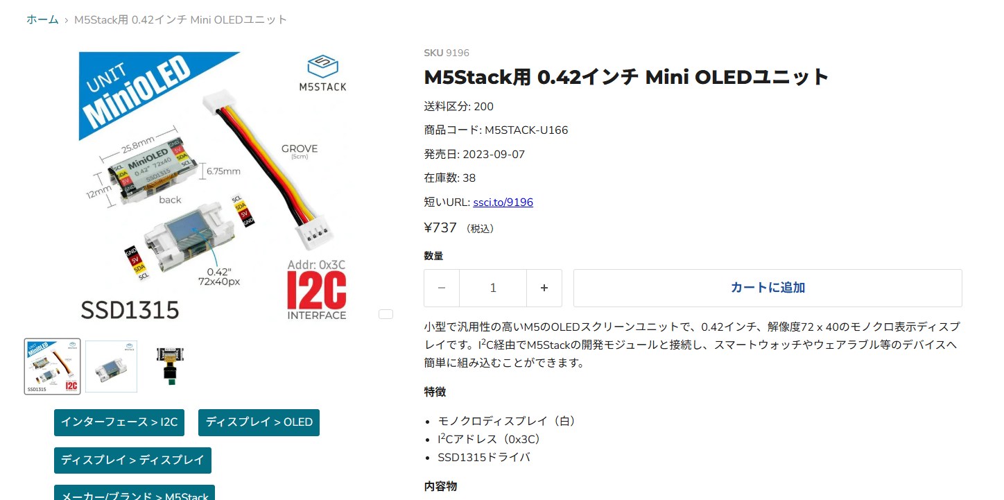 M5Stack用 0.42インチ Mini OLEDユニット — スイッチサイエンス